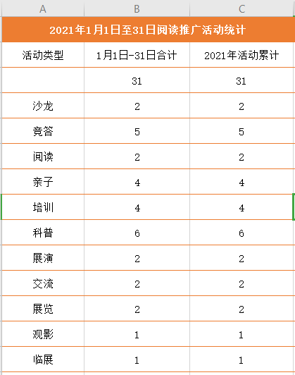 2021年1月1日至31日阅读推广活动统计