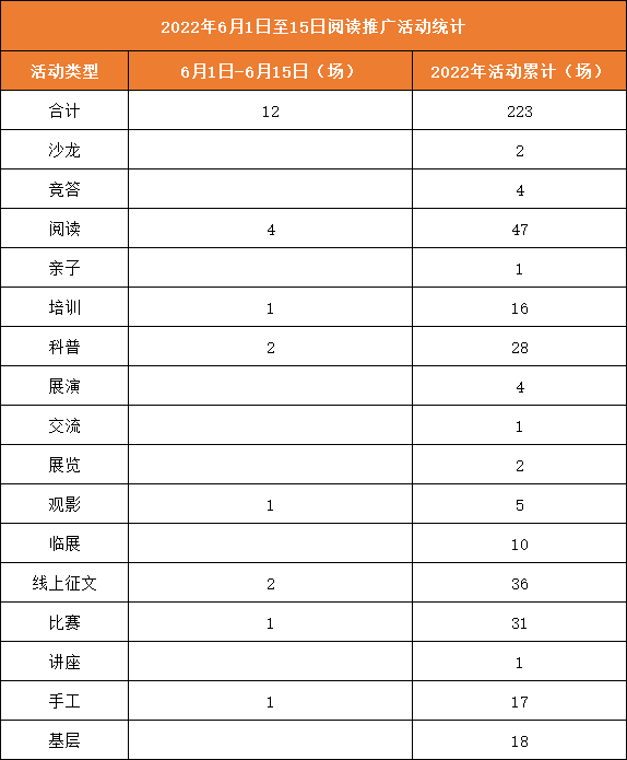 2022年6月1日至15日阅读推广活动统计