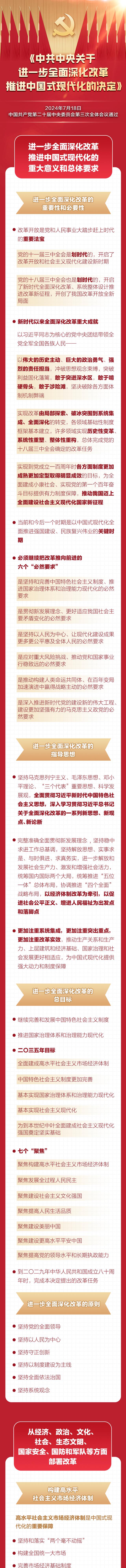 7月15日至18日,党的二十届三中全会在北京举行。全会审议通过了《中共中央关于进一步全面深化改革、推进中国式现代化的决定》。